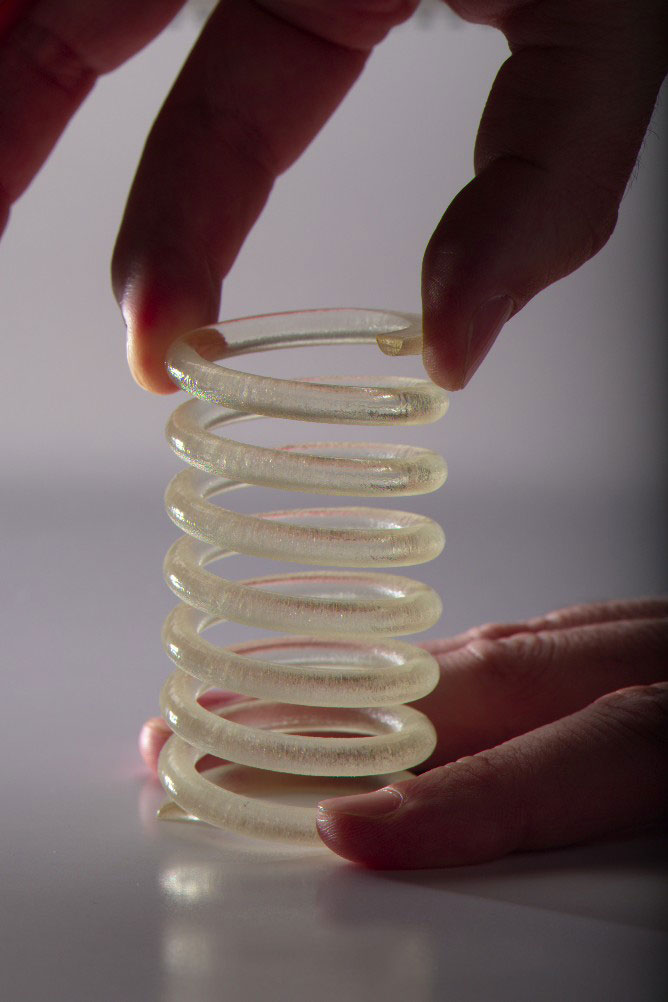 Wenn es mal schnell gehen muss, schafft vor allem der Wegfall der Nachbelichtungszeiten einen gern genutzten Vorteil. Mit den permanent weiterentwickelten Objet- Materialien auf Basis von Acrylharzen lassen sich heute eine breite Palette von unterschiedlichen Eigenschaften (Flexibilität, Transparenz etc.) bis hin zu Funktionsmodellen (Clipverbindungen) darstellen. Die Teile kommen stets komplett ausgehärtet aus der Maschine und müssen nicht mehr nachvernetzt werden. Das spart Zeit und Geld.