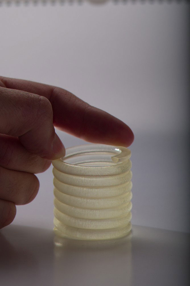 Wenn es mal schnell gehen muss, schafft vor allem der Wegfall der Nachbelichtungszeiten einen gern genutzten Vorteil. Mit den permanent weiterentwickelten Objet- Materialien auf Basis von Acrylharzen lassen sich heute eine breite Palette von unterschiedlichen Eigenschaften (Flexibilität, Transparenz etc.) bis hin zu Funktionsmodellen (Clipverbindungen) darstellen. Die Teile kommen stets komplett ausgehärtet aus der Maschine und müssen nicht mehr nachvernetzt werden. Das spart Zeit und Geld.